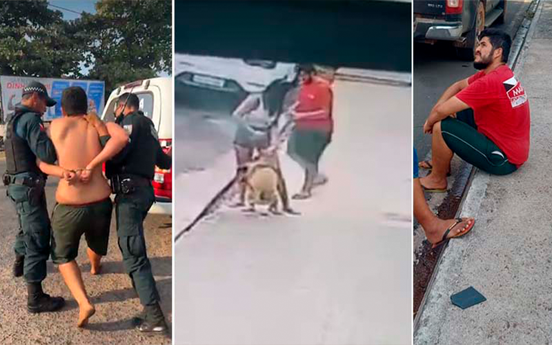 Vídeos de câmeras de segurança flagraram o momento do crime. A jovem reage assustada e o seu cachorro vai para cima do suspeito, veja a seguir: