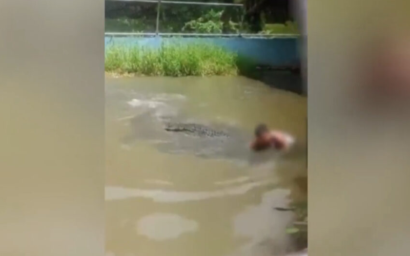 Em seguida, Lalay agarrou a coxa do turista e realizou o chamado “rolamento da morte” — movimento característico dos crocodilos utilizado para imobilizar ou dilacerar suas presas.