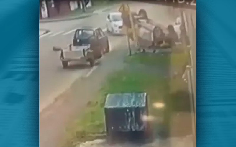 O momento do acidente foi registrado por câmeras de segurança da região. Nas imagens é possível ver que um veículo está na frente do carro da PM e tenta virar a esquerda, neste momento, a viatura bate contra o carro, perde o controle e capota (assista abaixo).
