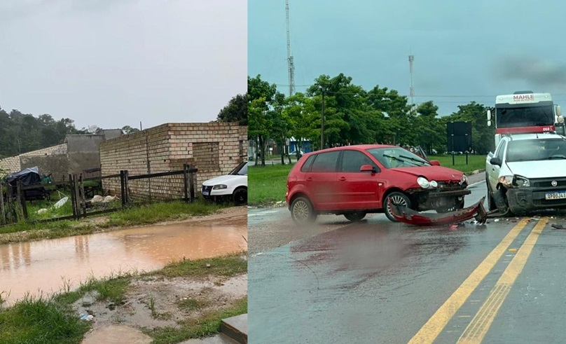 Vídeos – Chuva causa acidentes de transito, enxurrada, alaga ruas e transborda cachoeira em Novo Progresso