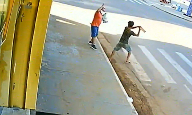 Um homem foi agredido a pauladas no meio da rua na manhã desta quarta (12) em Tucuruí, no sudeste do Pará. O caso de violência foi registrado por câmeras de segurança.
