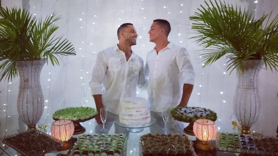 Casal se conheceu na faculdade e no último dia 10 oficializou a união (Foto: Reprodução) Dois soldados da Polícia Militar oficializaram, em cerimônia íntima, a união e quebraram parte do tabu que cerca a profissão. Os dois foram identificados como Victor e Wilker, integrantes da coorporação de Minas Gerais.