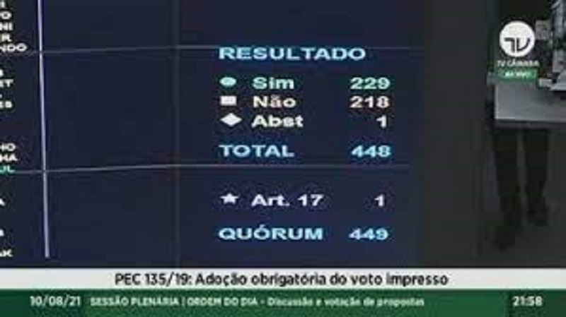 PEC precisava de, no mínimo, 308 votos, mas foi rejeitada mais uma vez durante votação na noite de hoje (10)