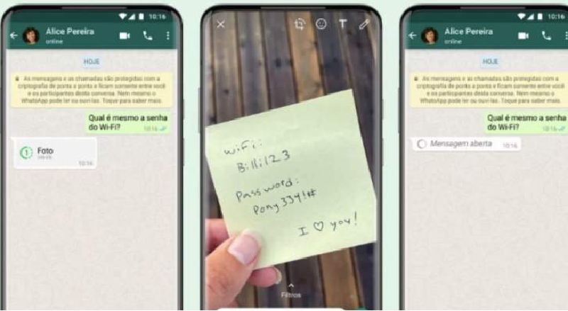 Para evitar dúvidas sobre o conteúdo da conversa, os termos são substituídos por “Mensagem aberta” após a abertura e o consequente desaparecimento do arquivo.