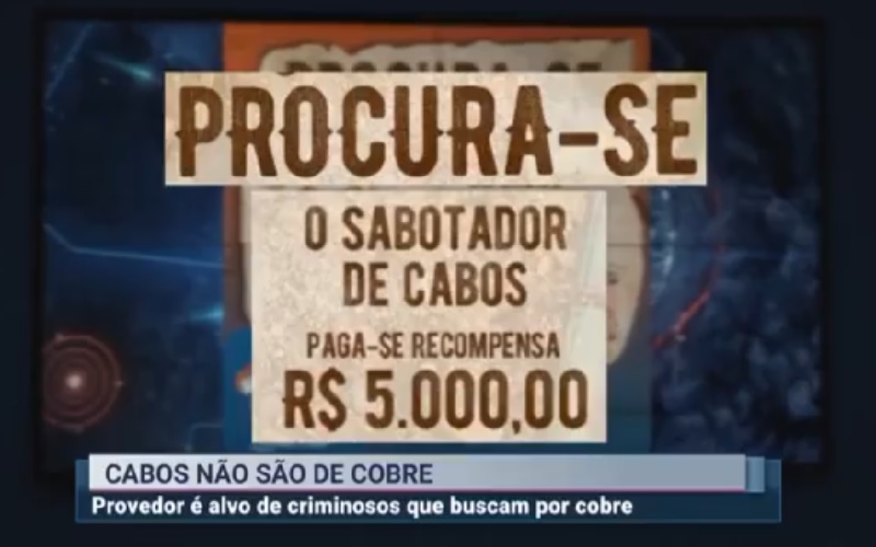 WSP Provedor de internet oferece R$ 5 mil de recompensa para quem entregar sabotador de cabos da rede de internet