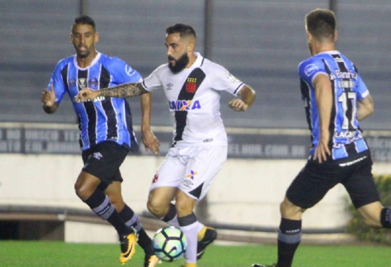 O jogo – O Grêmio começou melhor a partida, com mais posse de bola, mas sem conseguir passar pelo boa marcação dos cruzmaltinos. O Vasco, aos poucos, equilibrou o confronto e passou a avançar com mais intensidade, só que sem deixar espaço no setor defensivo. Assim, os lances de perigo não aconteciam em São Januário.