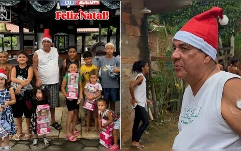 Zeca Pagodinho espalha alegria no Natal ao distribuir presentes para crianças de Xerém. | Reprodução X (antigo Twitter) Zeca Pagodinho